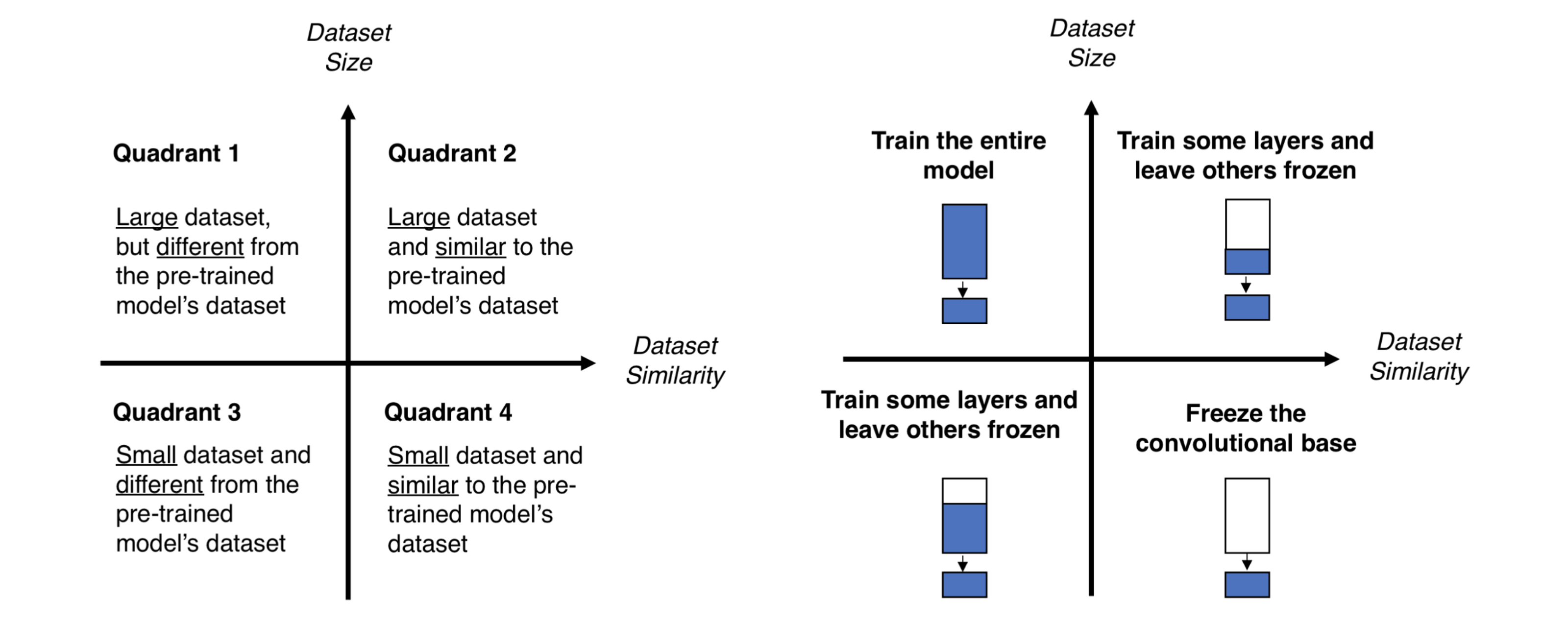 - 데이터의 크기와 유사성에 기반하여 fine-tuning의 전략을 선택하는 방법