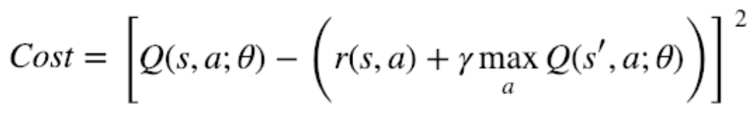MSE (평균 제곱근 오차) 이런 성질 때문에 $Q(s', a; \theta)$ 는 Q-target 이라고 불리기도 합니다.