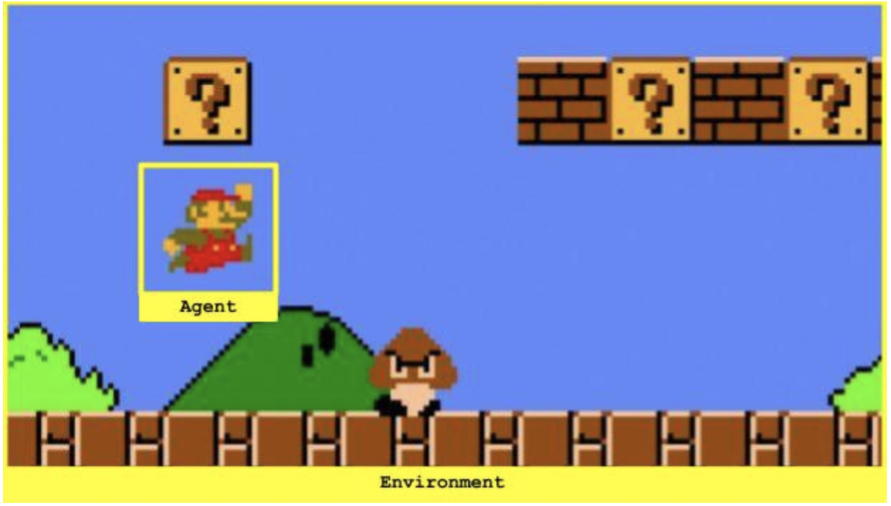 강화학습의 한 예로 슈퍼 마리오를 들어보겠습니다. 마리오는 그 게임의 세상, 즉 환경(Environment)과 상호작용을 하는 Agent입니다. 상태(State)는 매 순간 스크린에 보여지는 그 이미지이고, 한 에피소드는 게임의 한 판이 시작되는 시점부터 끝나는 시점까지의 내용이라고 할 수 있겠죠. 이 때, 끝나는 시점은 그 판을 클리어하는 순간이 될 수도, 또는 마리오가 죽게되는 순간이 될 수도 있습니다.