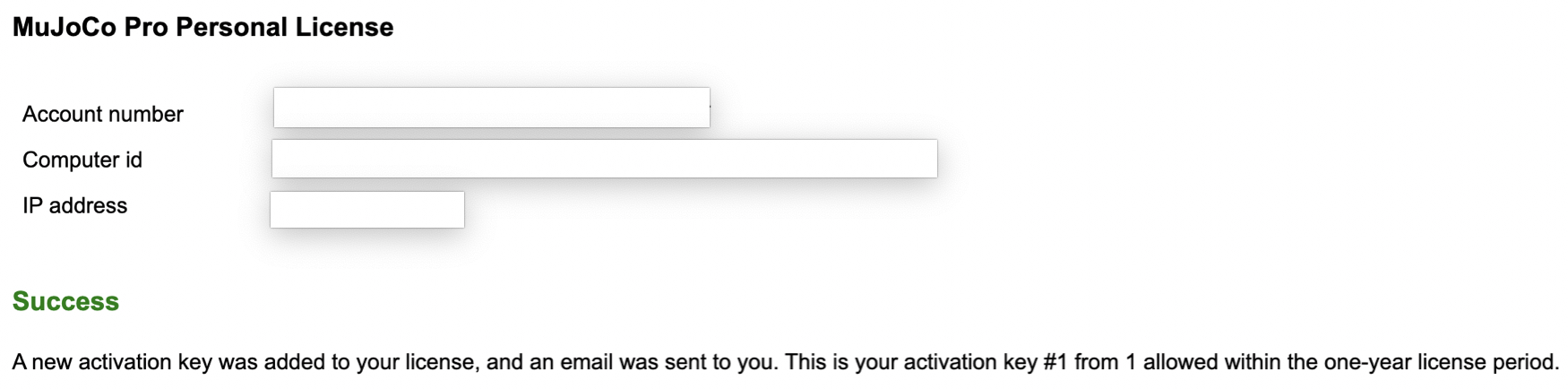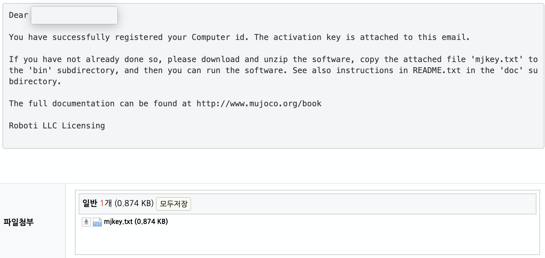 동시에 학교 메일로 다시 "MuJoCo Pro Personal Activation Key" 제목의 메일이 도착합니다.