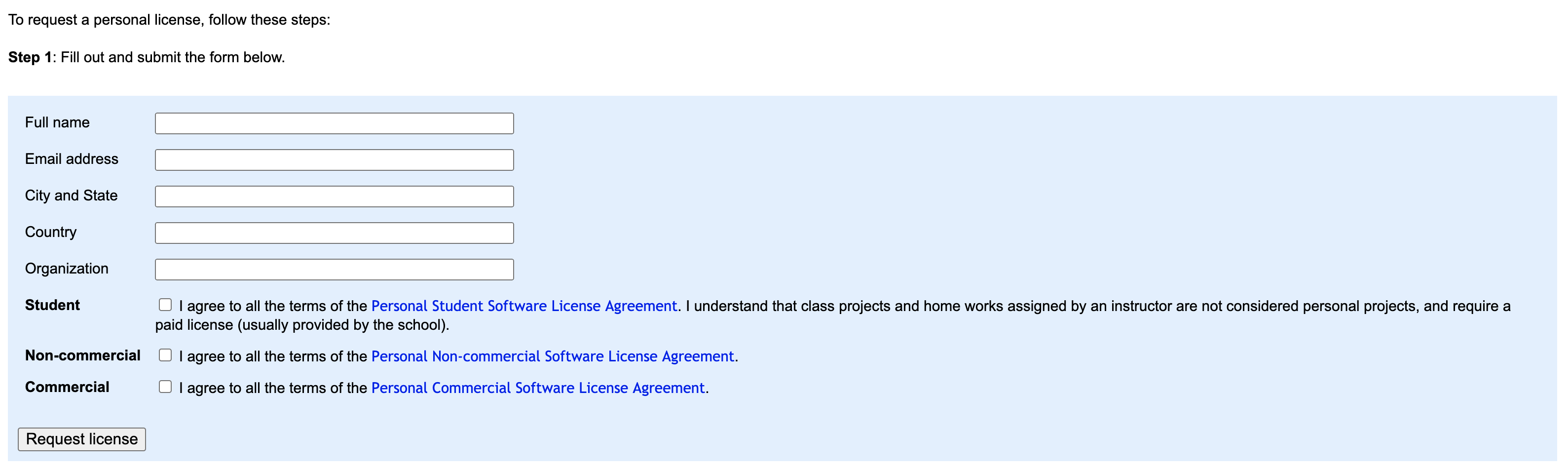 'Student' 체크란에 체크를 하고 Request License를 누르면 다음과 같은 창이 뜹니다.