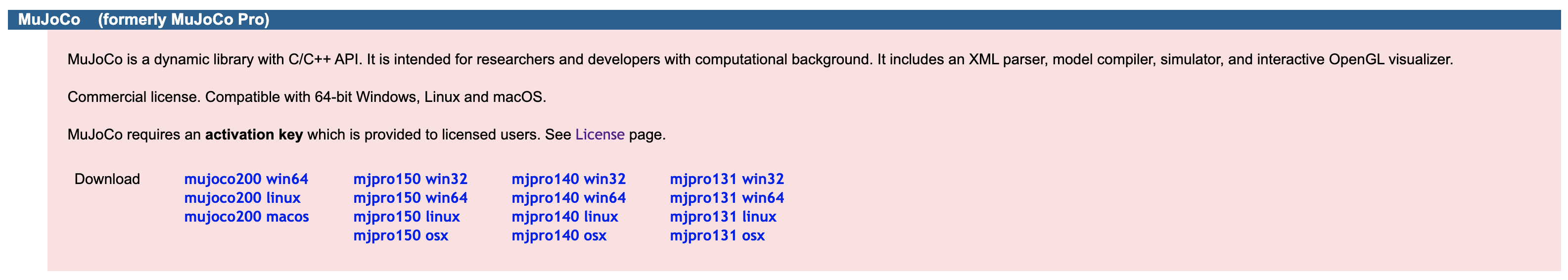 git clone을 활용해서 최신 깃허브 코드를 내려받는 편이 속편합니다.$ git clone github.com/openai/mujoco-py.git$ cd mujoco-py$ python setup.py install설치가 잘 완료되면, 마지막으로 Mujoco 소프트웨어를 다운받습니다.