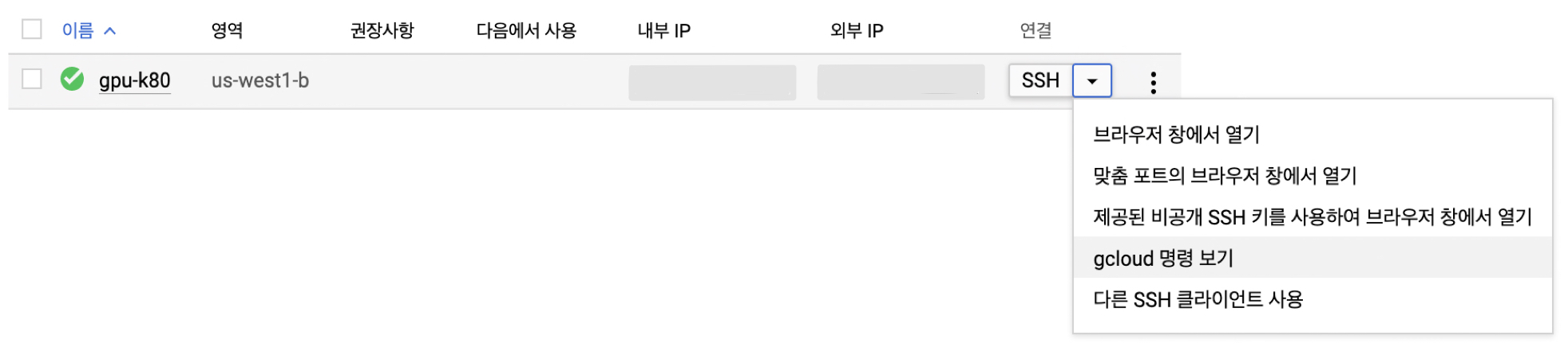 gcloud와ssh두 가지인데, 구글이니까!gcloud를 이용해서 접속해보겠습니다.