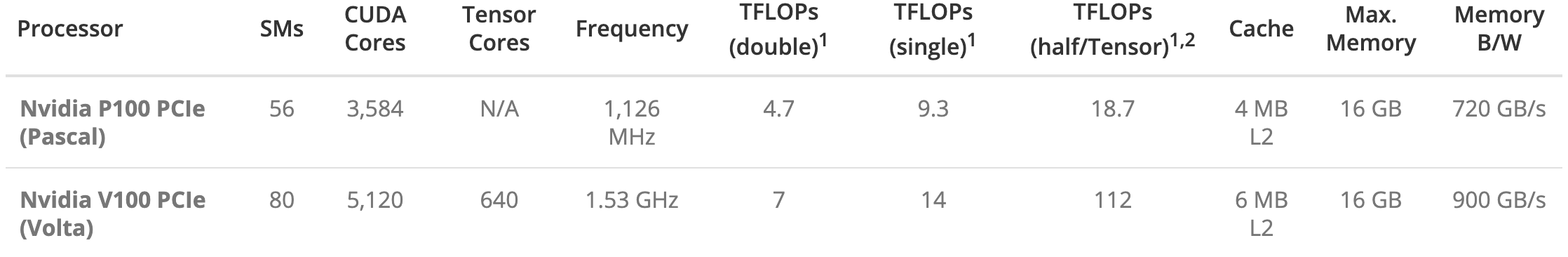 (자세한 스펙 비교는 K80 vs. P100와 P100 vs. V100를 참고하세요!)