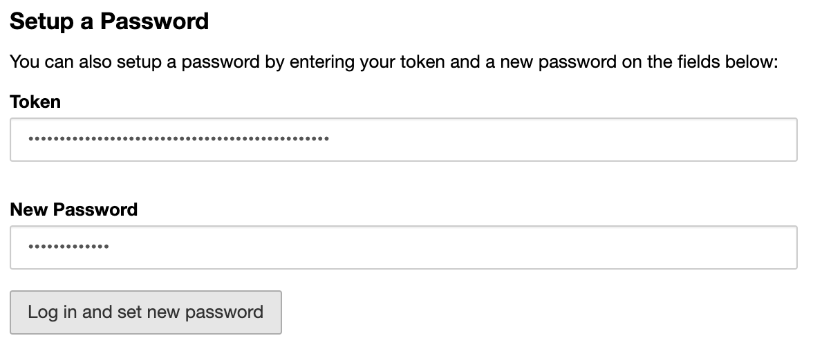 복사한 token을 다음과 같이 브라우저의 token 칸에 입력하고, 밑의 password 칸에는 원하는 비밀번호를 입력합니다.