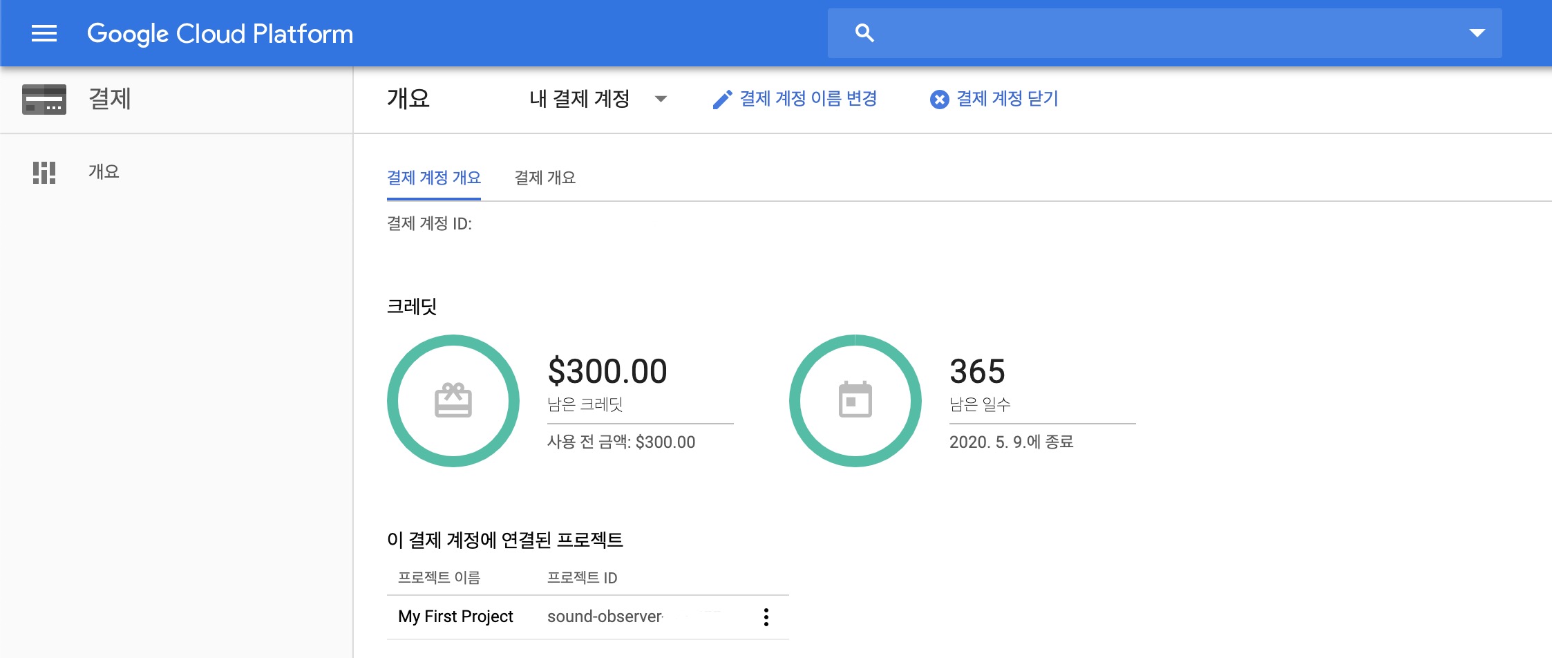 ㅤ무사히 로그인이 되면, 왼쪽 네비게이션 바 중 "결제" 탭에서 아래와 같이 $300의 크레딧을 확인할 수 있습니다.