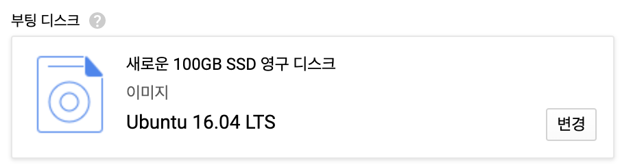 SSD 100GB,Ubuntu 16.04 LTS로 설정하겠습니다.