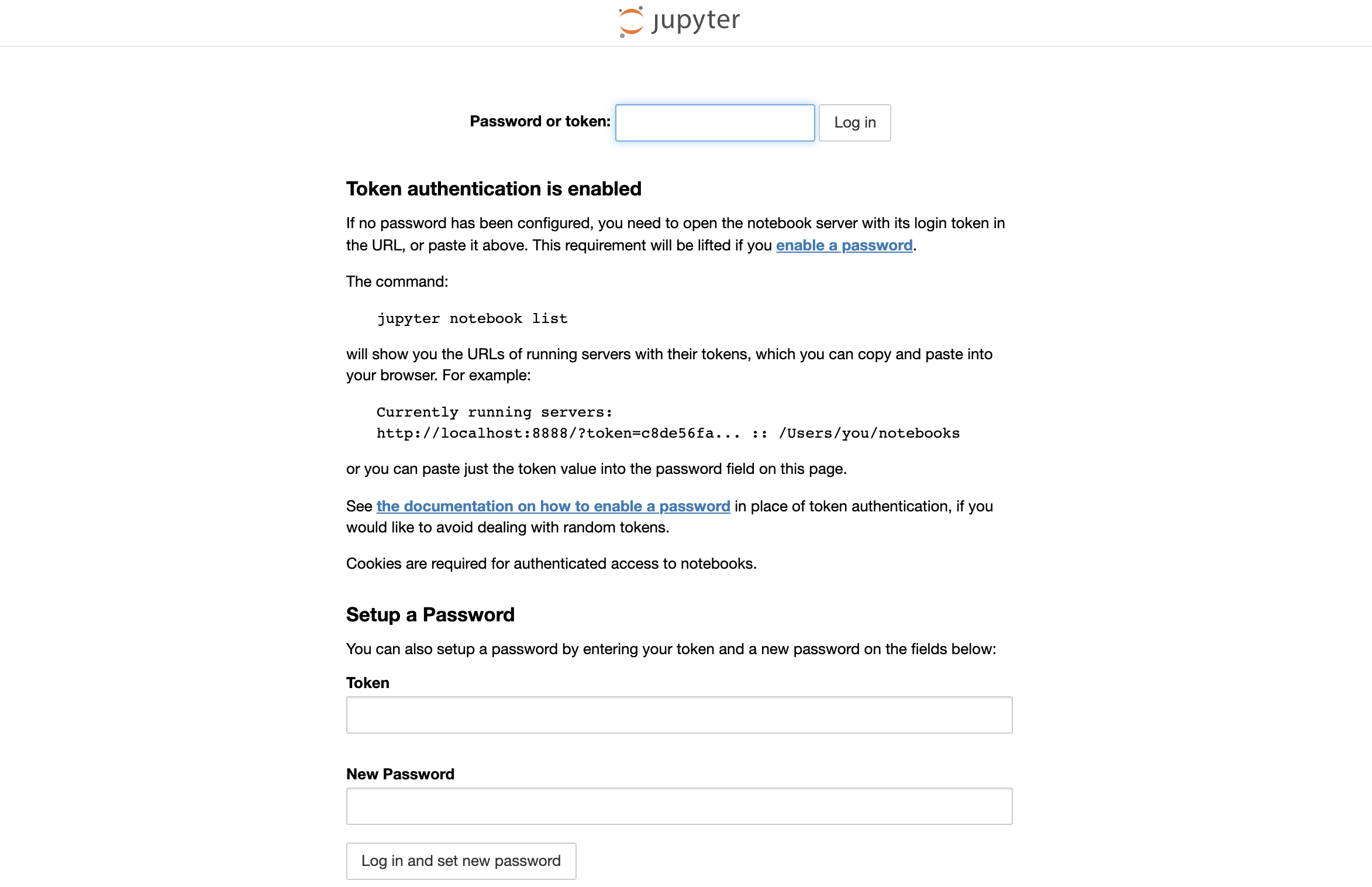 비밀번호를 따로 설정해주지 않았기 때문에 터미널에서 보여주는 token을 입력해서 설정할 수 있습니다.