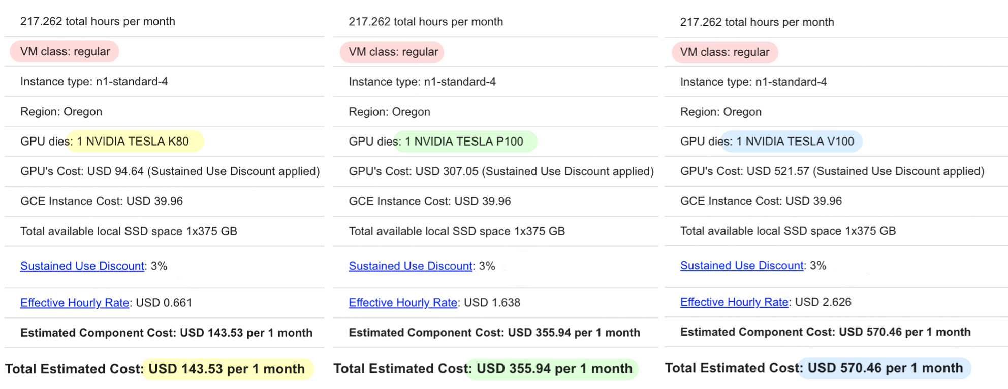 약 217 hour/month(10 hour/dayx5 day/weekx4 week/month) - GPU 개수 : 1개
