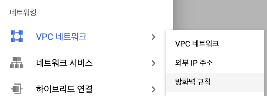 ㅤ- 네비게이션 바의 "네트워킹" - "VPC 네트워크" > "방화벽 규칙" 으로 들어갑니다.