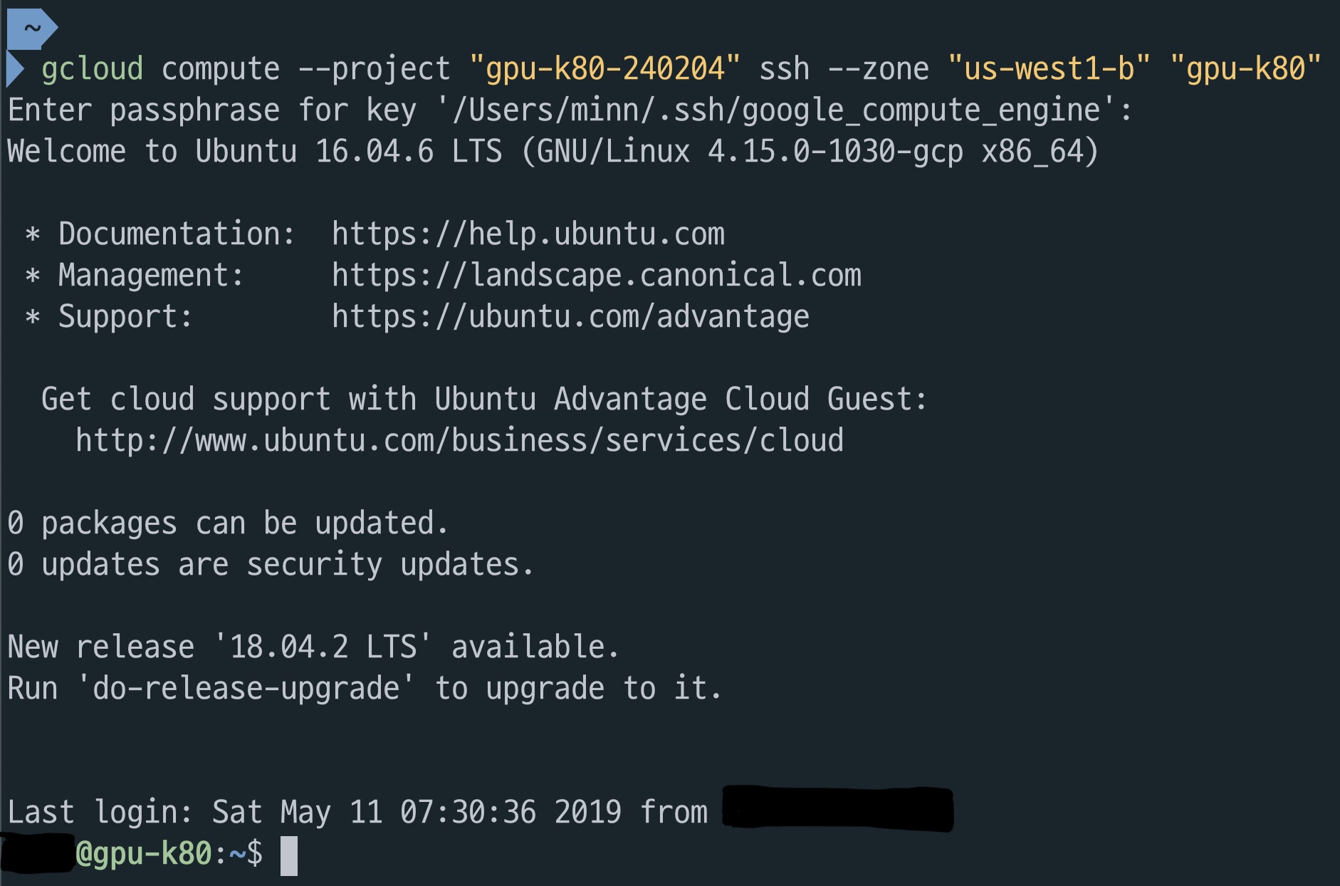 이제 GCP 페이지는 꺼도 되고 앞으로는 명령어 한줄만으로 인스턴스를 접속할 수 있습니다..! 얏호