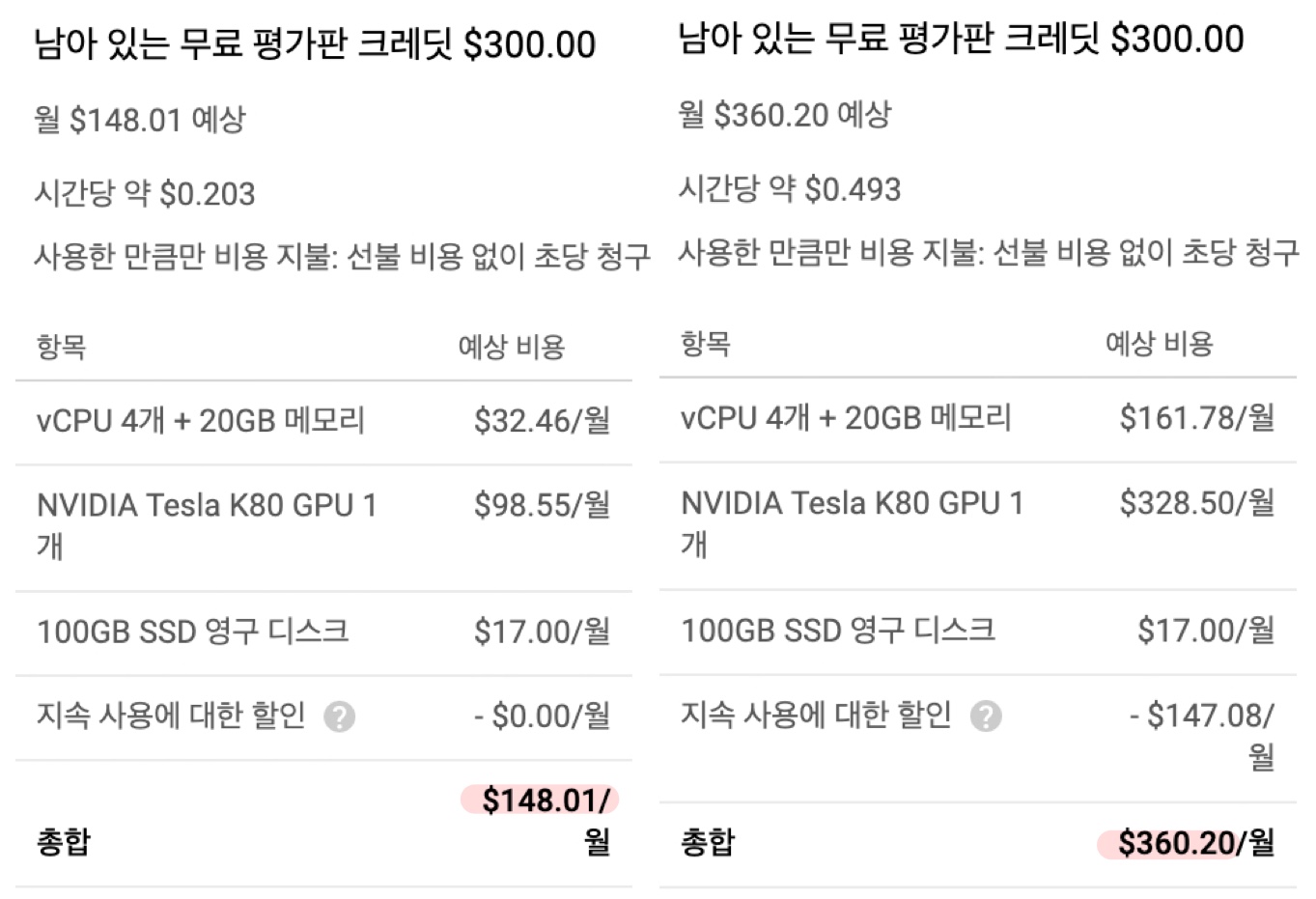 300불의 무료 크레딧을 받았지만 이래서는 V100은 보름도 못 쓰고 탕진하게 생겼네요...또륵