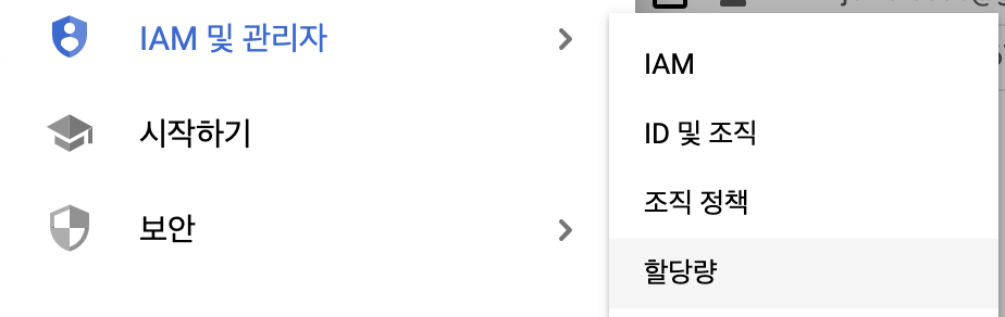 ㅤ- 왼쪽 네비게이션 바에서 "IAM 및 관리자" > "할당량" 으로 들어갑니다.